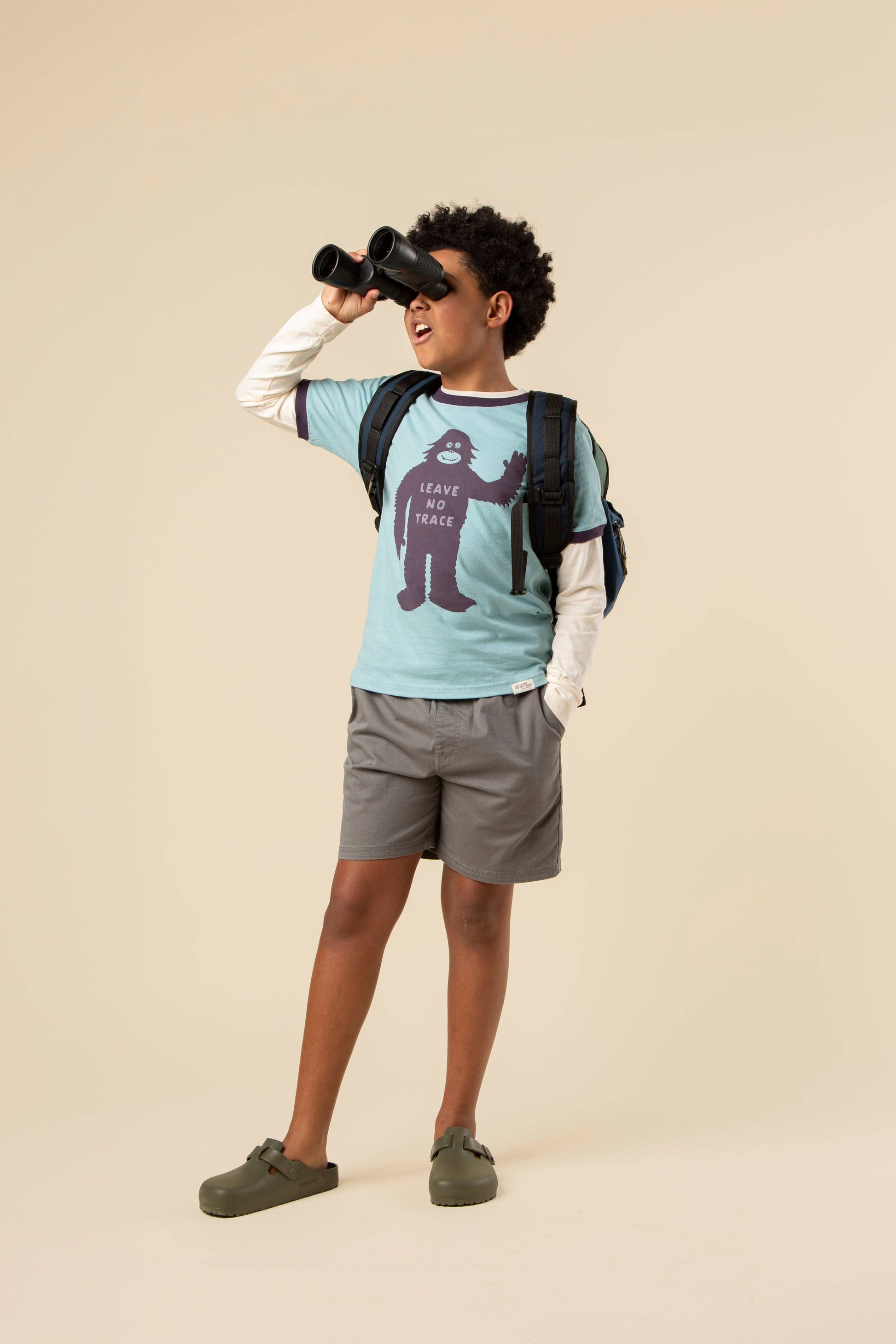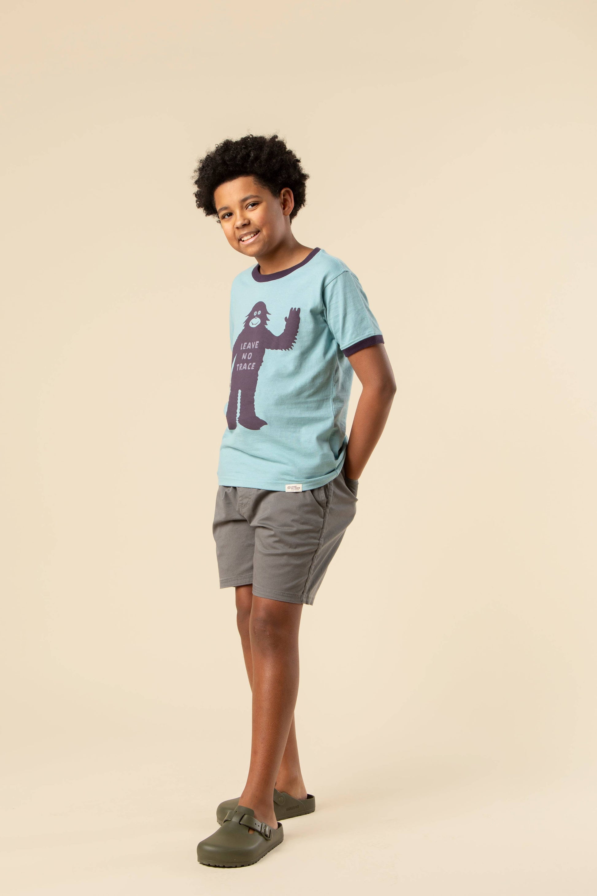 Who better to teach us about leaving no trace than the most elusive hiker of all time? This ringer tee stars our Bigfoot friend who manages to explore the wilderness without leaving a single trace behind. Crafted from soft, sustainable cotton that's perfect for outdoor adventures, this graphic tee supports Leave No Trace and might just inspire your young explorer to become as careful as Sasquatch himself.